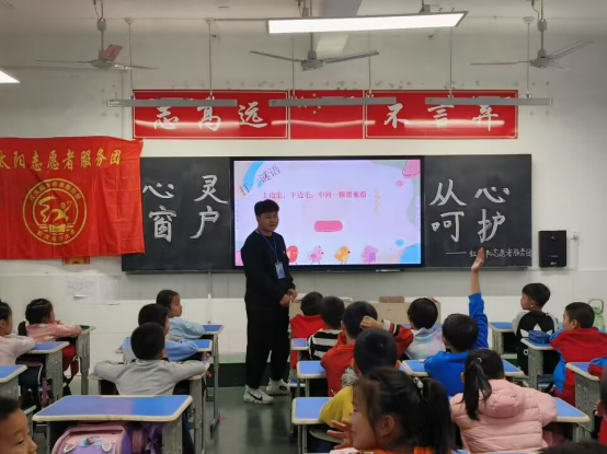 “同学们,猜一猜‘上边毛,下边毛,中间一颗黑葡萄'是什么啊?”主讲人杨成一提出谜语,同学们就异口同声的回答“眼睛”。在短暂的趣味谜语小问答之后,主讲人通过对PPT中的图片和视频的讲解帮助同学们了解眼睛的构造、近视的原因和近视的危害以及如何保护眼睛。课后,志愿者组织员工来到室外,分组进行蒙眼摸物游戏,员工们蒙上眼睛开始做走直线和摸物活动,让同学们始料未及的是这些平日里简单的动作在蒙上眼睛后变得异常困难。对此,张家明同学说道:“从前总觉得戴眼镜好玩,现在我想好好保护我的眼睛,为了让我的世界更‘睛’彩。”时光匆忙,万物有灵,我们应该爱护眼睛去追寻世间美好,用眼睛记录长亭古道和高山原野。